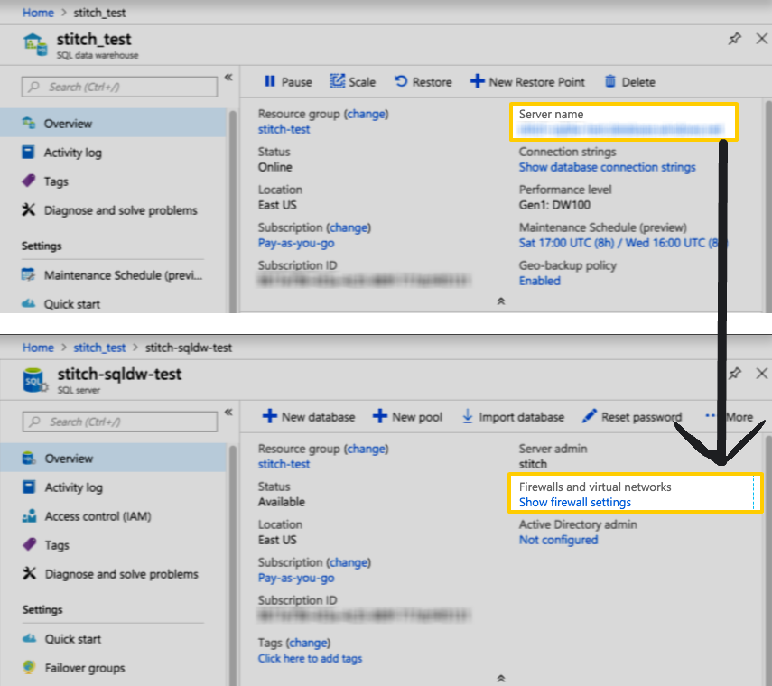 For the connection from Stitch to be successful, you’ll need to configure the firewall for your Azure SQL Database instance to allow access from our IP addresses.