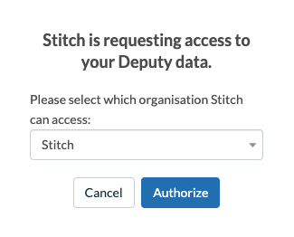 Step 2: Authorize Stitch to access Deputy
